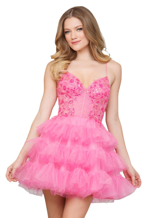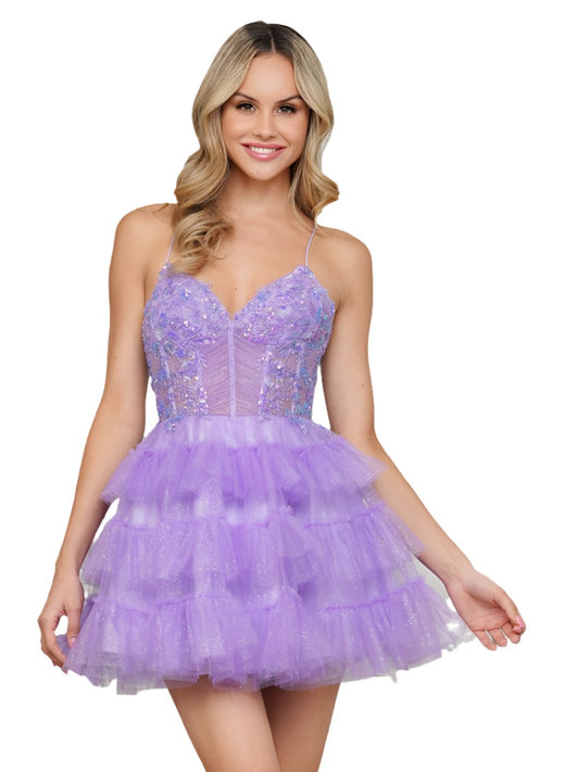 Colors 3346 Short Ruffle Layer Homecoming Dress A Line Lace Corset Pleated Fit & Flare Formal