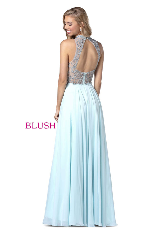 Blush Prom 11942 Size 10 White Chiffon A Line Prom Dress High Neckline Formal Gown