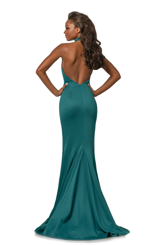 Johnathan Kayne 2096 sz 4 Teal Fitted Mermaid High Neckline Prom Dress Pageant Gown