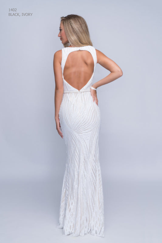 Nina Canacci 1402 Size 6 Ivory Sequin Prom Dress Pageant Gown Wedding Gown