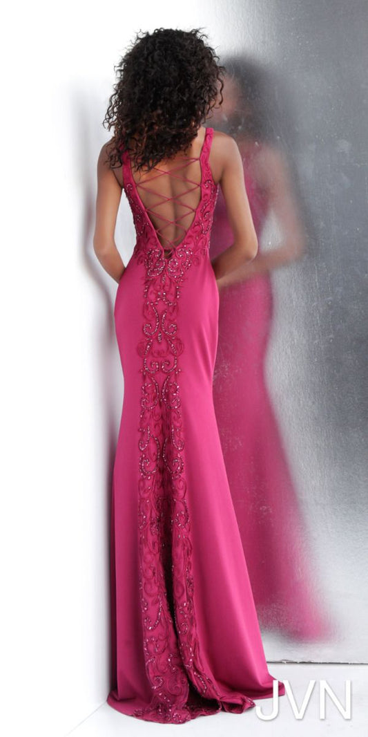 Jovani JVN64122 Size 4 Raspberry Prom Dress formal evening gown wedding guest backless