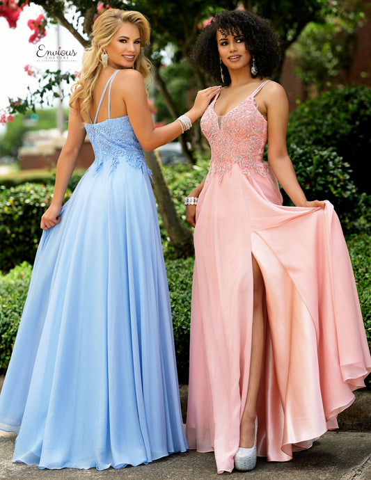 Envious Couture e1575 Size 12 Periwinkle Blue Prom Dress Lace Slit Pockets