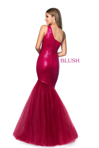 Blush Prom 20219 size 6 Berry Red one shoulder sequin tulle mermaid prom dress pageant gown