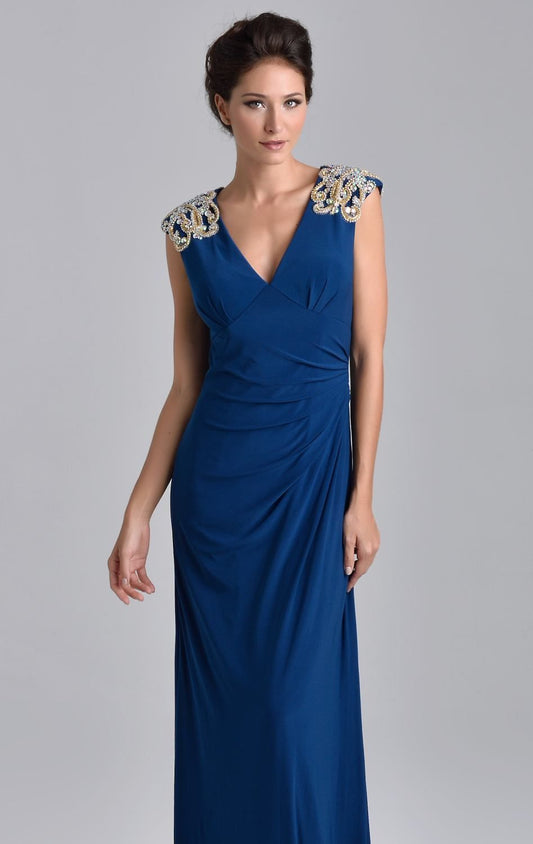 Nina Canacci M206 Long Fitted Dress Formal Evening Gown Crystal Cap Sleeve Mother Of