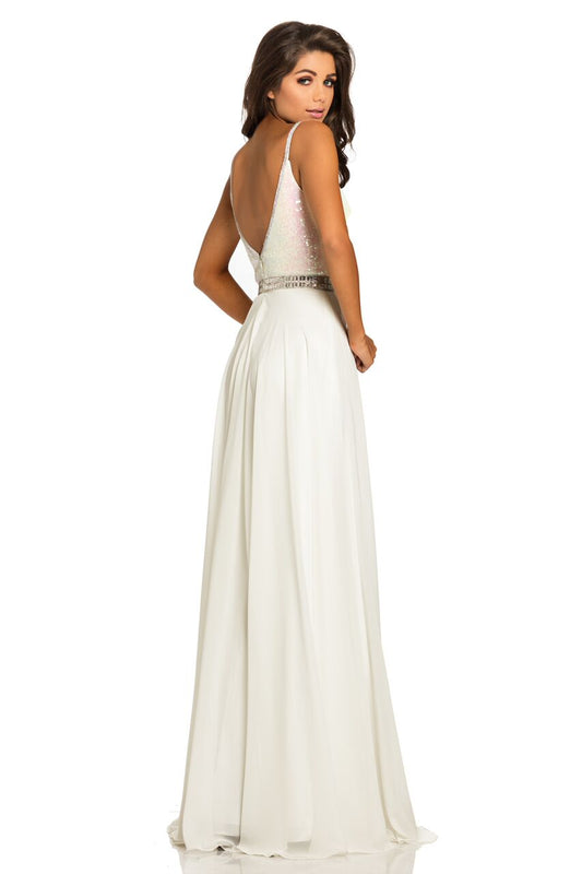 Johnathan Kayne 8050 Size 4 White sequin top prom gown pageant chiffon dress