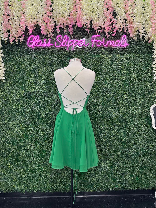 Lucci Lu 4150 size 8 Emerald Short cocktail homecoming dress open back spaghetti strap scoop neck
