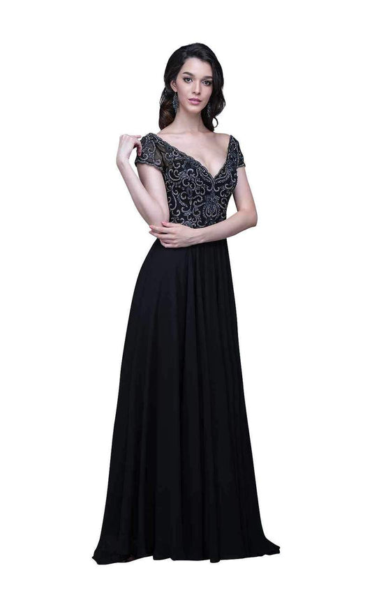 DQ 4304 Satin A Line Formal Dress V Neck Slit Mother Of Wedding Guest simple evening Gown