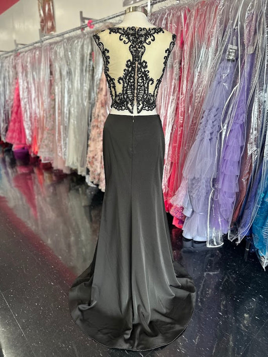 Jolene Collection 18096 Size 10 Black/Nude Long Sheer beaded lace dress formal Gown