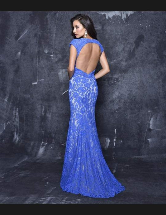 Envious Couture 15171 Size 00 Long Lace Prom Dress Low Back V Neck Evening Gown