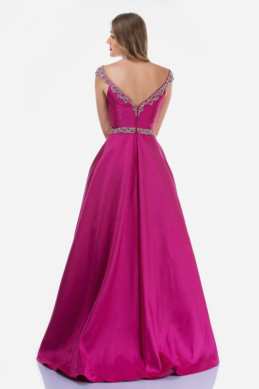 Nina Canacci 2265 Size 4 Fuchsia Crystal Off the Shoulder Prom Dress V Neck Ball Gown