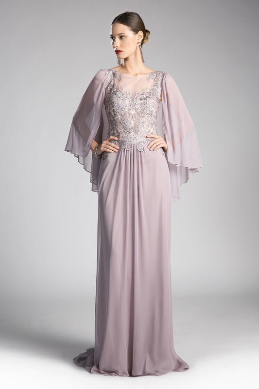 Nina Canacci M239 Size 10 Long Mauve V Neck Drape Sleeve Mother Of Dress