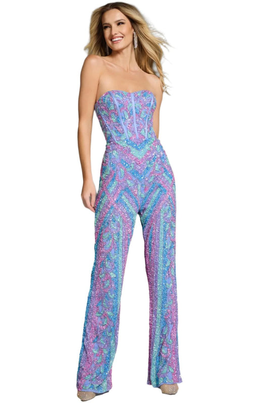 Jovani 42597 Strapless Sequin Jumpsuit Formal Sequin Corset Beaded Pageant Fun Fashion