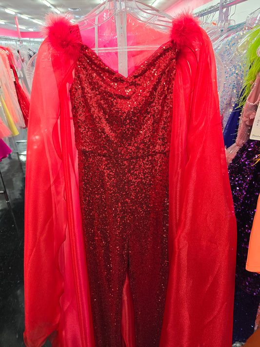 Ava Presley Girls 38028 Size 10 Hot Pink Long One Shoulder Feather Girls Pageant Jumpsuit Cape Beaded Fun Fashion