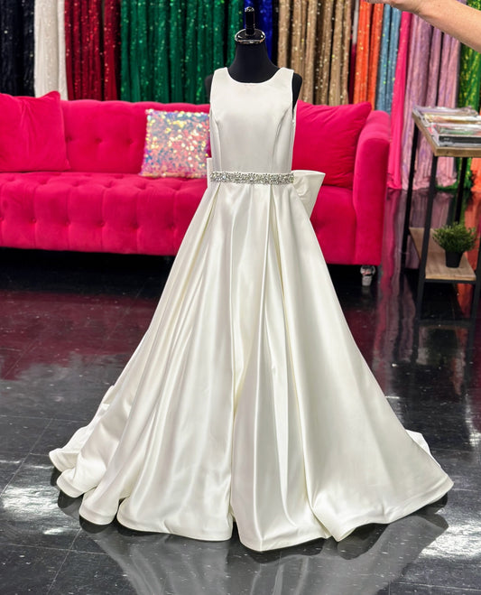 Ashley Lauren 8079 Size 12 Ivory Long satin A Line girls Pageant Dress High Neck Bow Formal Gown