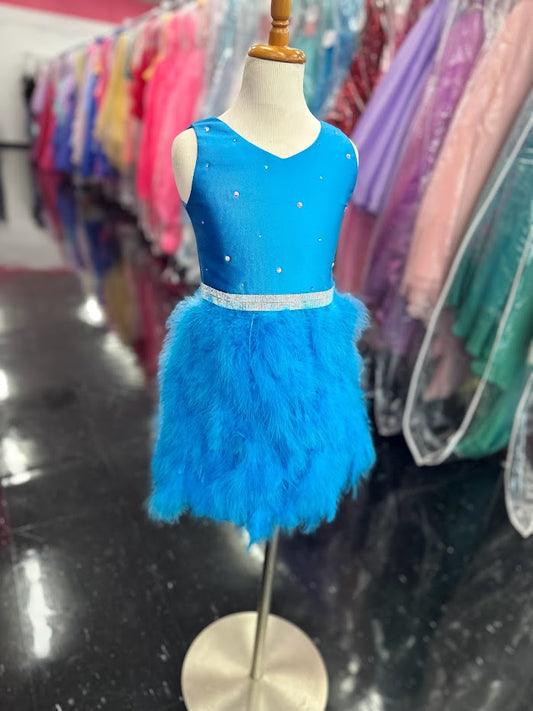 Ashley Lauren Kids 8114 Size 8 Turquoise Girls Scuba jumpsuit Pageant off the shoulder Feather Fun Fashion