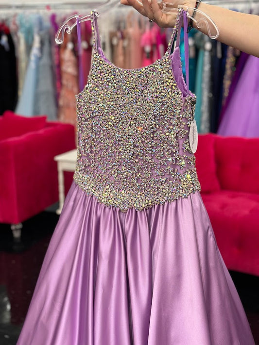 Sugar Kayne C342 Size 10 Lilac Girls Pageant Dress Feathers Ruffle Layer Sequin
