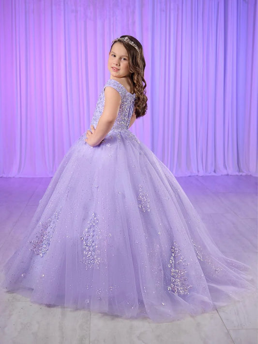 Tiffany Princess 13764 Size 10 Lilac Girls Pageant Dress Off the shoulder Sequin Shimmer Ball Gown