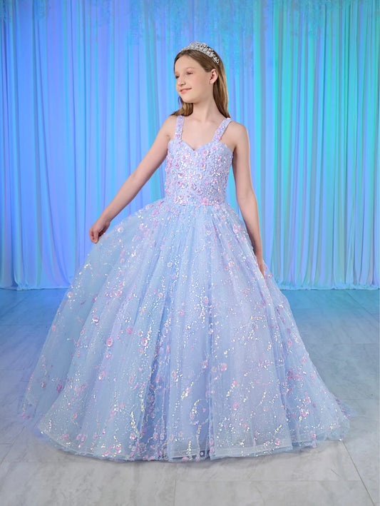 Tiffany Princess 13759 Size 2 Sky Girls Pageant Dress Butterfly Scoop Neck Crystal Corset Long Gown