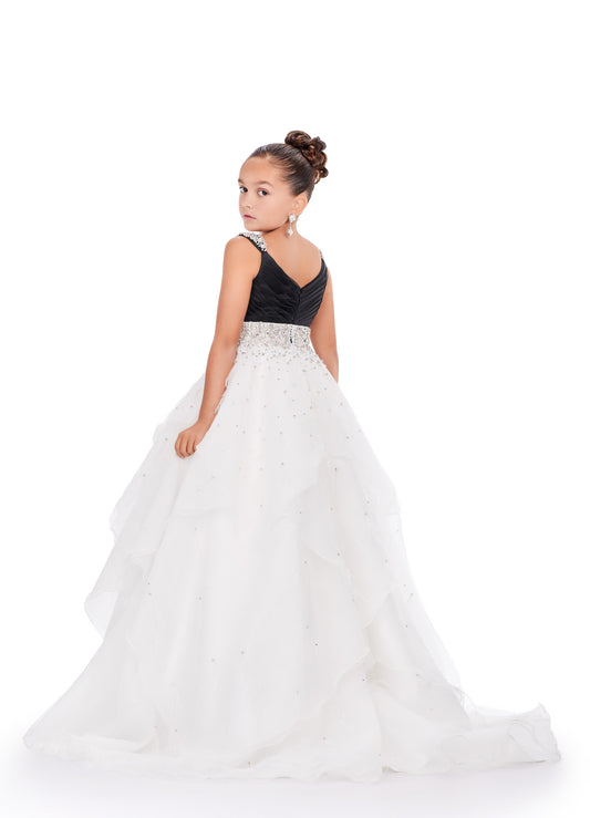 Ashley Lauren Kids 8219 Size 8 Black Ivory Girls Layered Feather Pageant Dress ballgown Embellished V Neck Gown