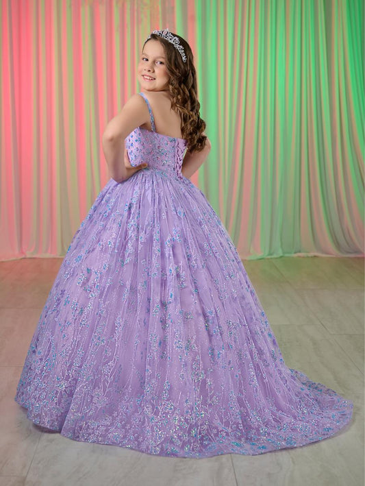Tiffany Princess 80026MQ Size 2 Lilac Girls Sequin Pageant Dress Corset Ball Gown Scoop neck Train