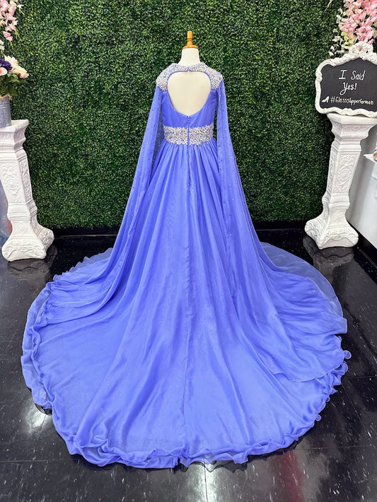 Samantha Blake 1023 Size 8 Periwinkle Girls Long Cape Sleeve Pageant Dress Crystal Cut Out A Line Chiffon