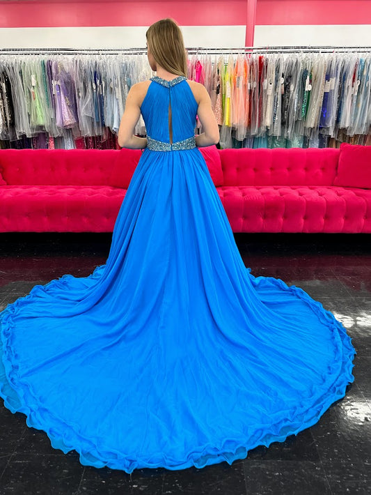 Samantha Blake 1102 Size 14 Turquoise Girls Pageant Dress A Line Crystal Cape Chiffon A Line Gown Train