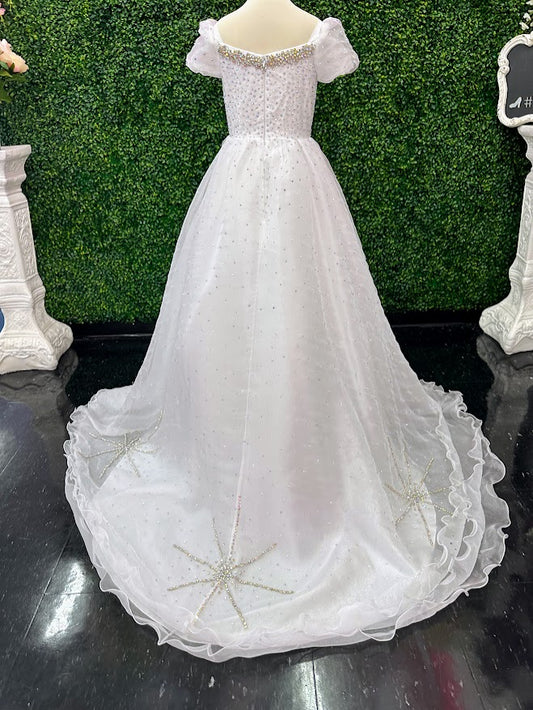 Sugar Kayne C355 Size 2 White Girls Pageant Dress One Shoulder Ballgown Formal Crystal Bodice Organza Straight Skirt Train
