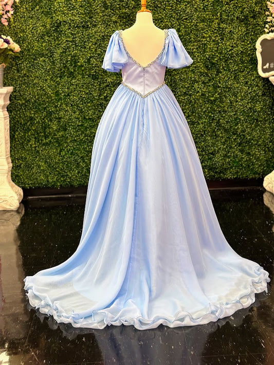 Samantha Blake 1126 Size 4 Sky Girls Pageant Dress Ruffle Cap Sleeve A Line Gown Satin Bodice Formal