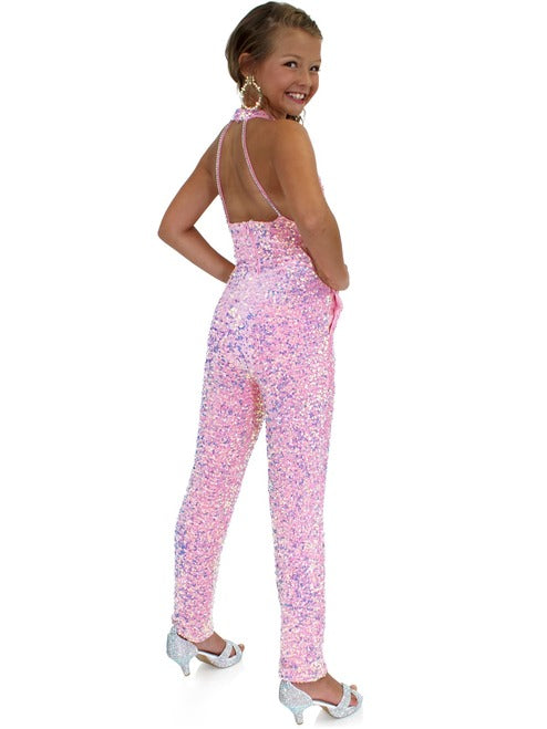 Marc Defang 5022 Size 6 Hot Pink Girls Velvet Sequin Pageant Jumpsuit Fun Fashion High Neck
