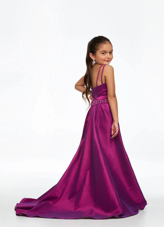 Ashley Lauren Kids 8131 Size 2 Magenta Stretch Taffeta Romper Fun Fashion Overskirt Pageant Wear