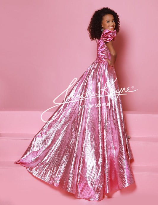 Sugar Kayne C364 Size 4 ROSE Girls Pageant Crystal Romper Metallic Ruffle Shoulders Overskirt Formal