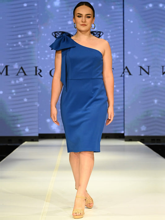 Vienna Prom 8717 Size 10 Royal Short Sequin One Shoulder Dress Overskirt Satin Slit Formal Wear Pageant