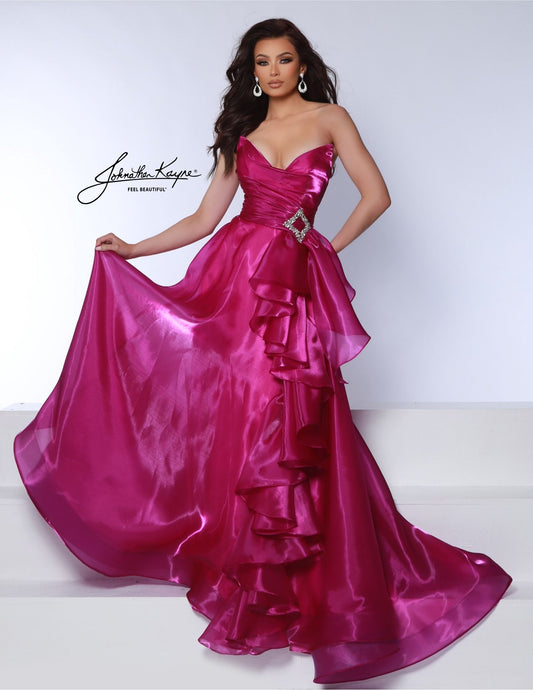 Johnathan Kayne 2962 Size 16 Cherry organza prom dress ballgown pointed sweetheart neckline crystal belt ruffles