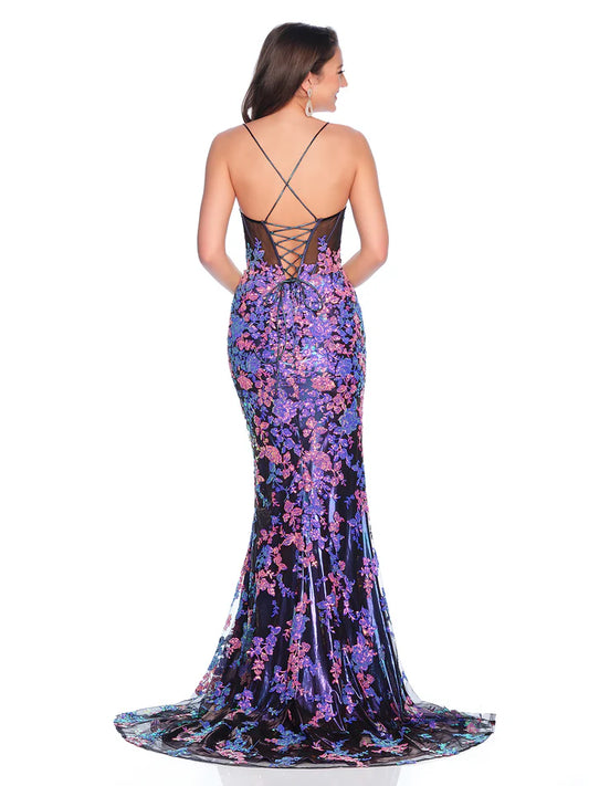 Dave & Johnny 12278 Size 2 Purple Metallic Sheer Corset Sequin Prom Dress Slit Formal Gown