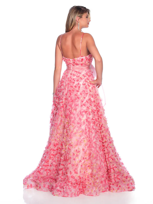 Dave & Johnny 12136 Size 2 Pink Print Pleated Ruffle Prom Dress Bow Floral Print A Line Ballgown Formal