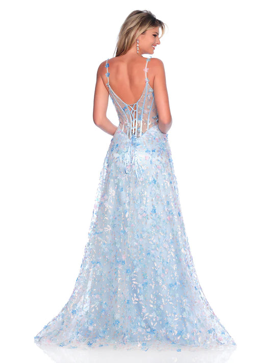 Dave & Johnny 12017 Size 4 Ice Blue Sheer Corset 3D Prom Dress A Line Slit formal floral Gown V Neck
