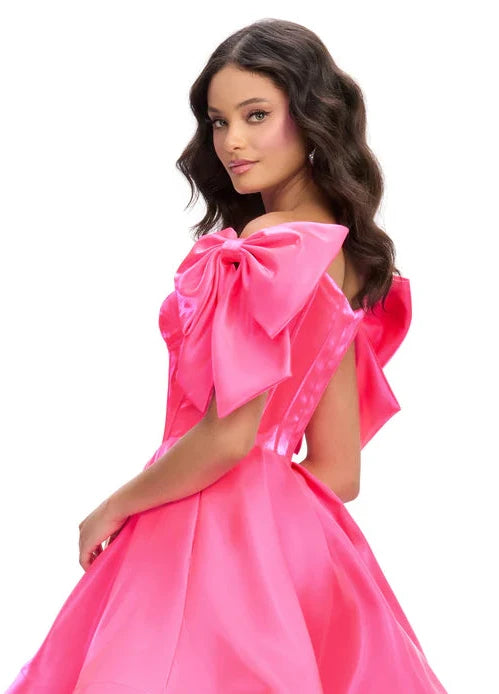 Ashley Lauren 11871 Size 12, 14 Hot Pink Long Prom Dress off the shoulder Bows Corset A Line Pageant Gown Pockets