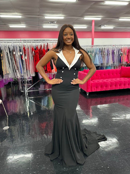 Johnathan Kayne 1442 Size 4 Black Long Tuxedo Dress Pageant Formal Evening Gown Classy