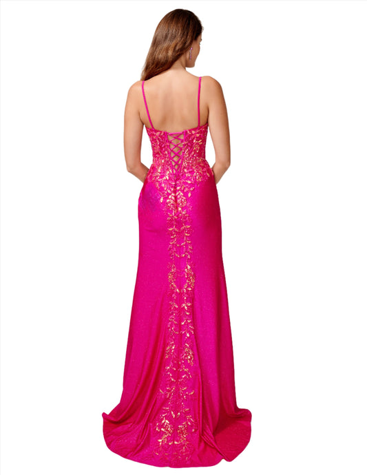 Nina Canacci 3260 Size 4 Fuchsia Sheer Sequin Lace Corset Prom Dress Slit Shimmer Formal Gown
