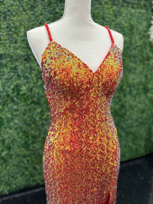 VIENNA Prom 60096 Size 6 Lava Sequin Short Fitted Neon Homecoming Dress Slit Cocktail Dress Formal