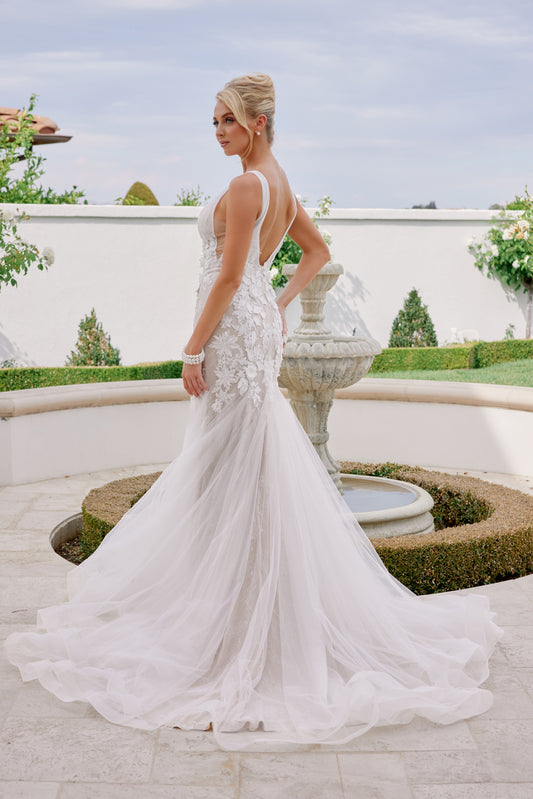 Nox Anabel JE917 Size 14 3D Floral Lace Mermaid Wedding Dress Bridal Gown Boho Train