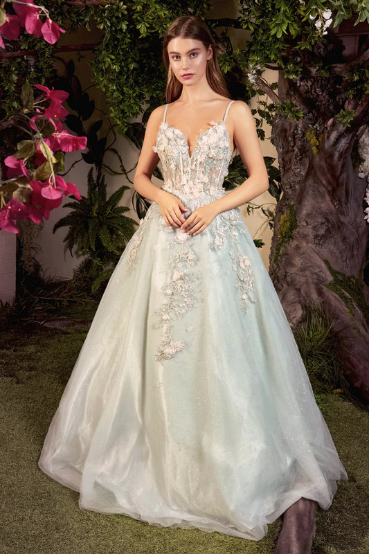 Andrea & Leo SOPHIA Dress A0892 Size 12 Sage A Line Shimmer Sheer Ballgown Formal Dress Floral Lace