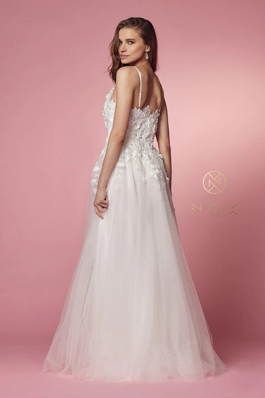 Nox Anabel R346 Size 10 A Line 3D Floral Lace Wedding Dress V Neck Bridal Gown