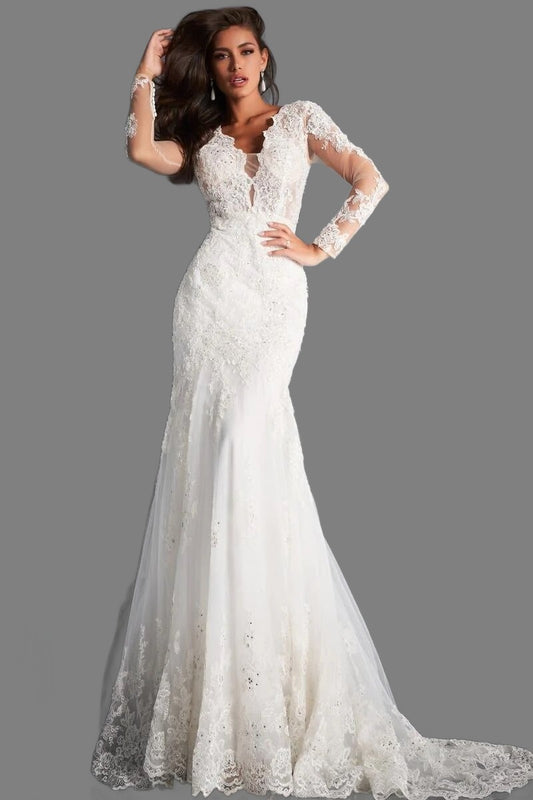 Jovani Bridal JB02579 size 8 Long Sleeve Lace Mermaid Wedding Dress Backless V Neck
