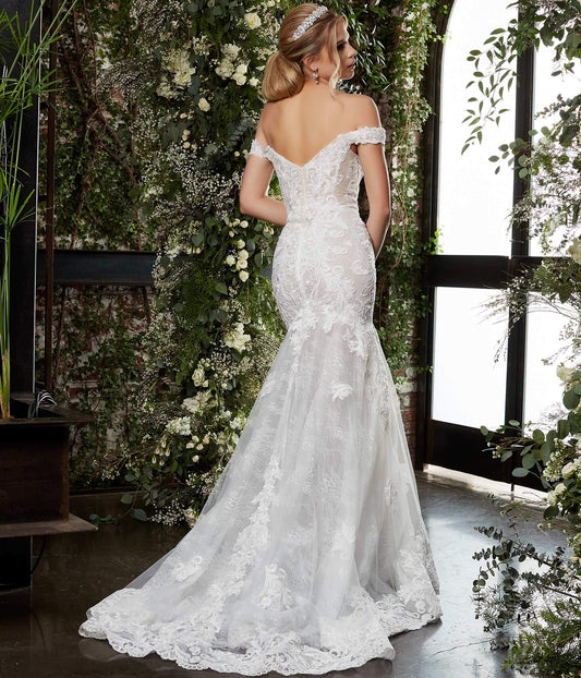 Jovani Bridal JB07266 Size 2 Long Sheer Lace V Neck Mermaid Wedding Dress off the shoulder