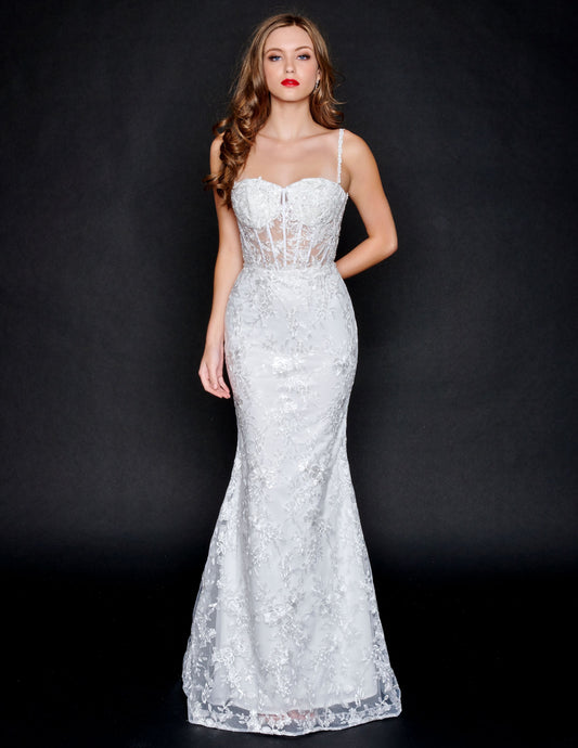 Nina Canacci 6556 Size 4 Long Mermaid Wedding Gown Sheer Lace Corset Dress Train