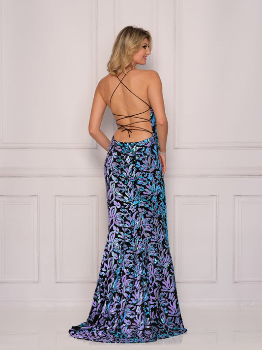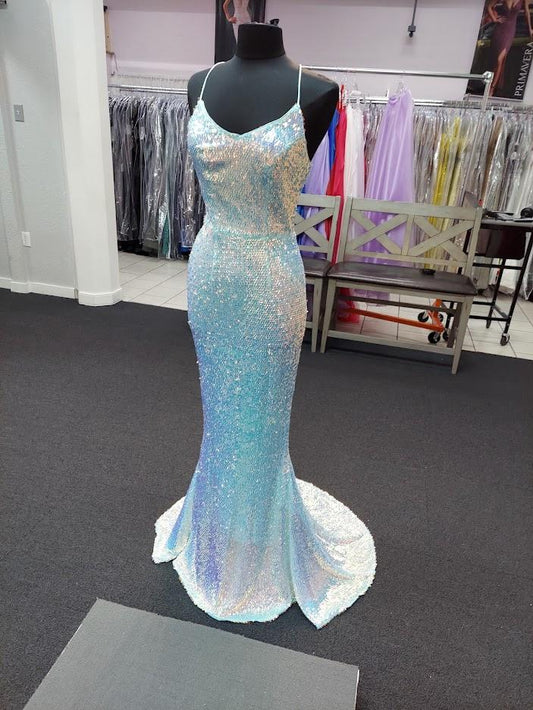 Primavera Couture 3722 Size 14 Iridescent Prom Dress V Neckline V Back Long Sequins Evening Gown