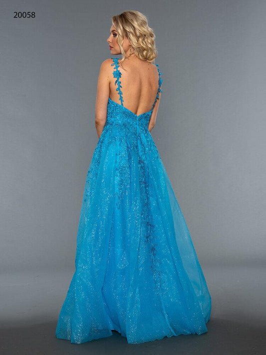 Stella Couture 20058 Size 6 Blue Long Lace Shimmer V Neck formal Prom Dress Pageant Gown