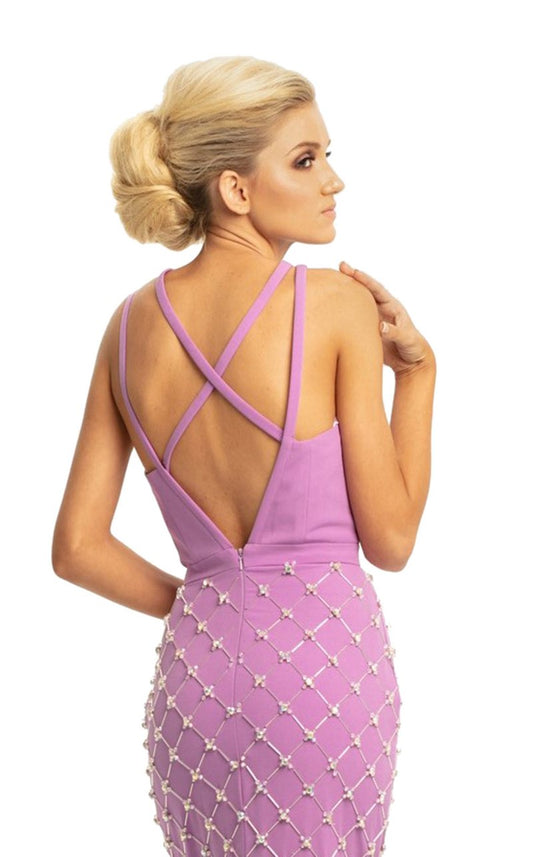 Jovani JVN94375 Size 8 sheer prom dress V neck slit Backless Watermelon Gown