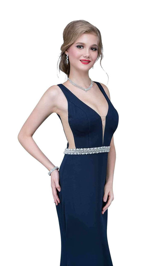 Nina Canacci 2124 fitted plunging neckline prom dress evening gown embellished belt